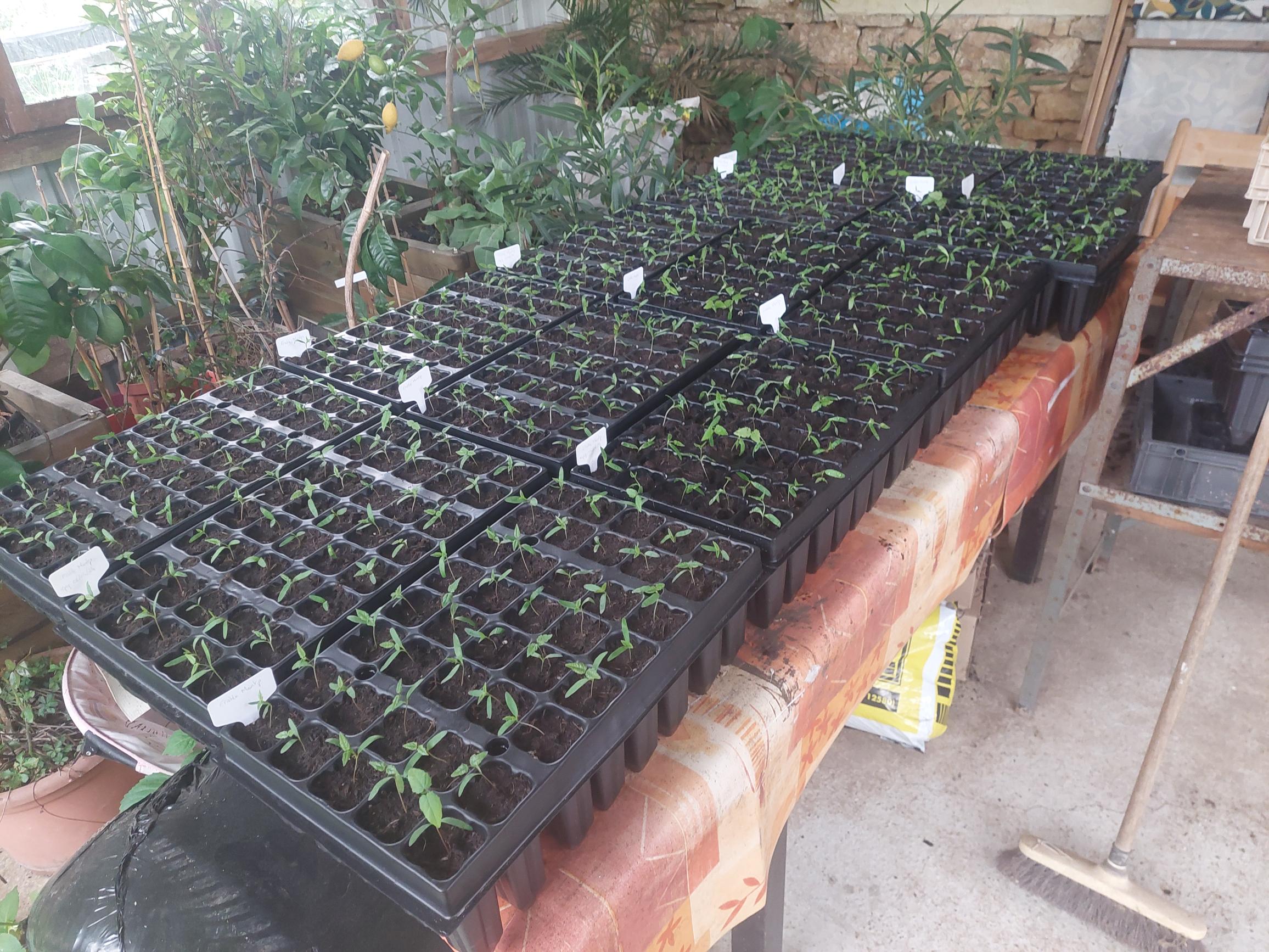tout est fait à la main : greffage, semis, plantation, paillage, désherbage, arrachage.